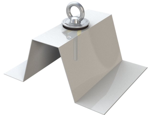 Edelstahl-Anschlagpunkt mit Kippdübel in Sandwich- und Trapezblech, geprüft nach EN 795:2012. Für max. 1 Person. Inkl. Befestigungsmaterial.