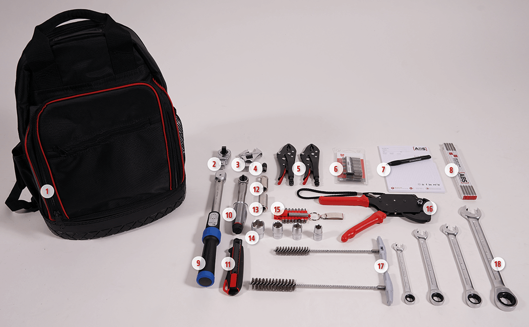 Rucksack mit Werkzeugsatz zur